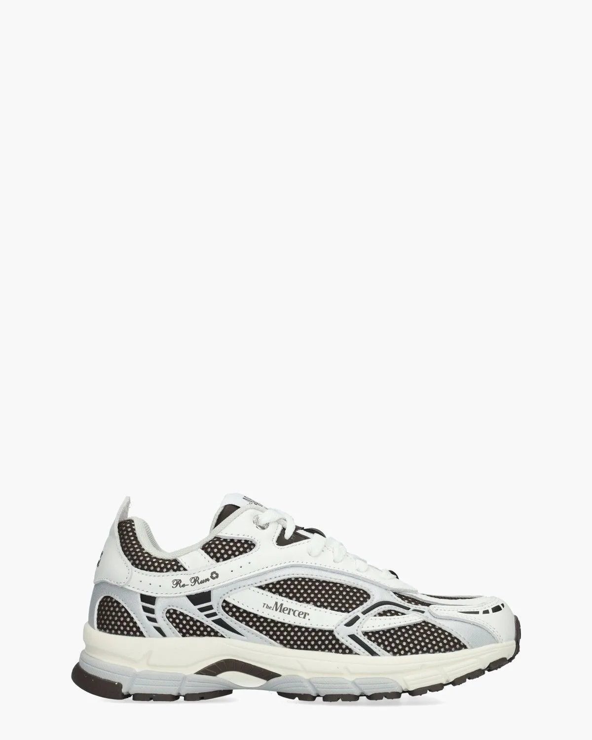 Fris en sportief met oog voor materiaalkeuze. Deze The Re-Run ME261002-156 damessneaker van Mercer valt op door een verfijnde mix van gerecycled leer en mesh in wit, zilver en taupe. De binnenzijde met gerecyclede polyester voering en een uitneembaar voetbed voelt licht en comfortabel aan. De ultralichte EVA-zool in off-white,