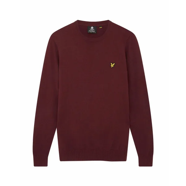 Lyle & Scott katoenen merinotrui met ronde hals in bordeauxrood