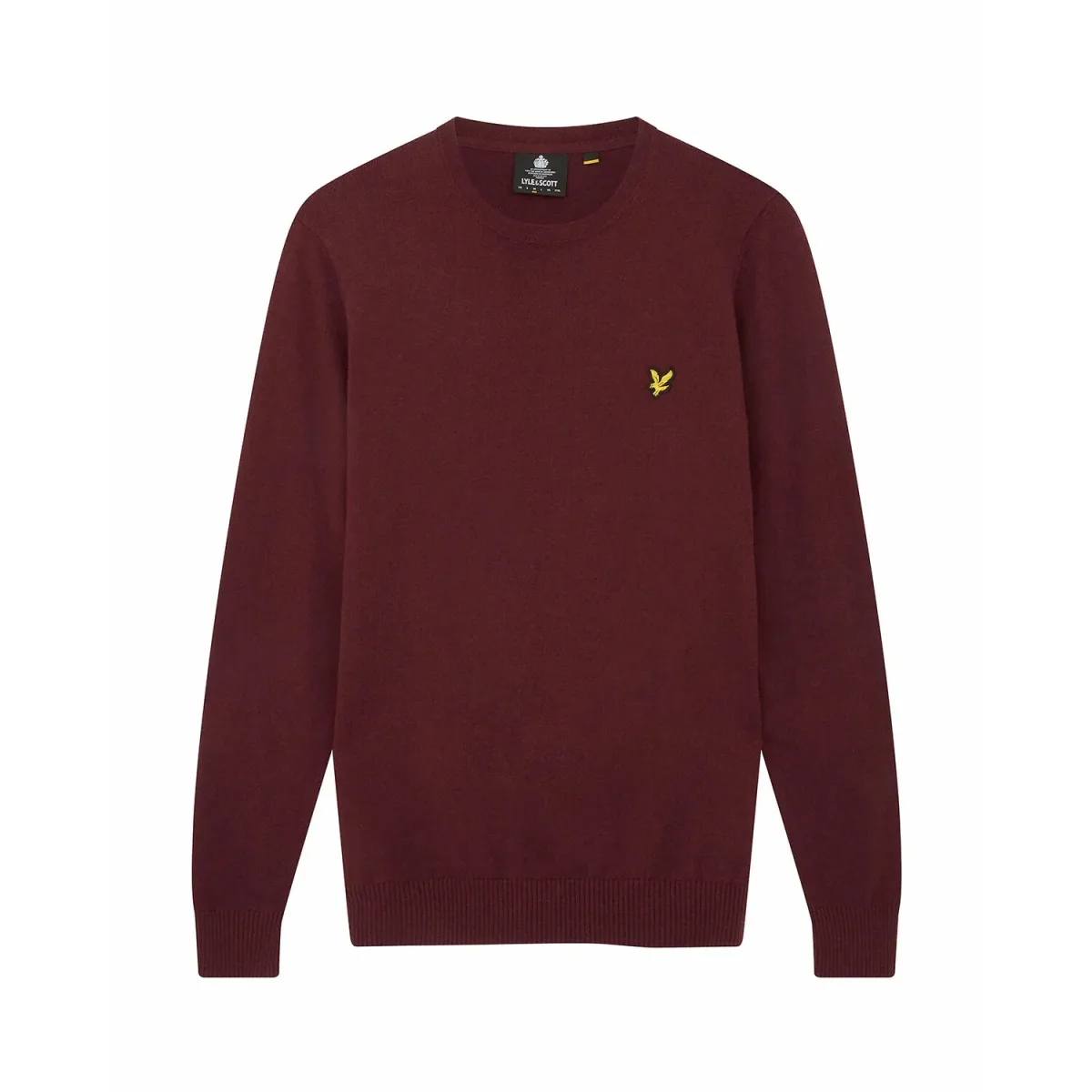 Lyle Scott katoenen merinotrui met ronde hals in bordeauxrood