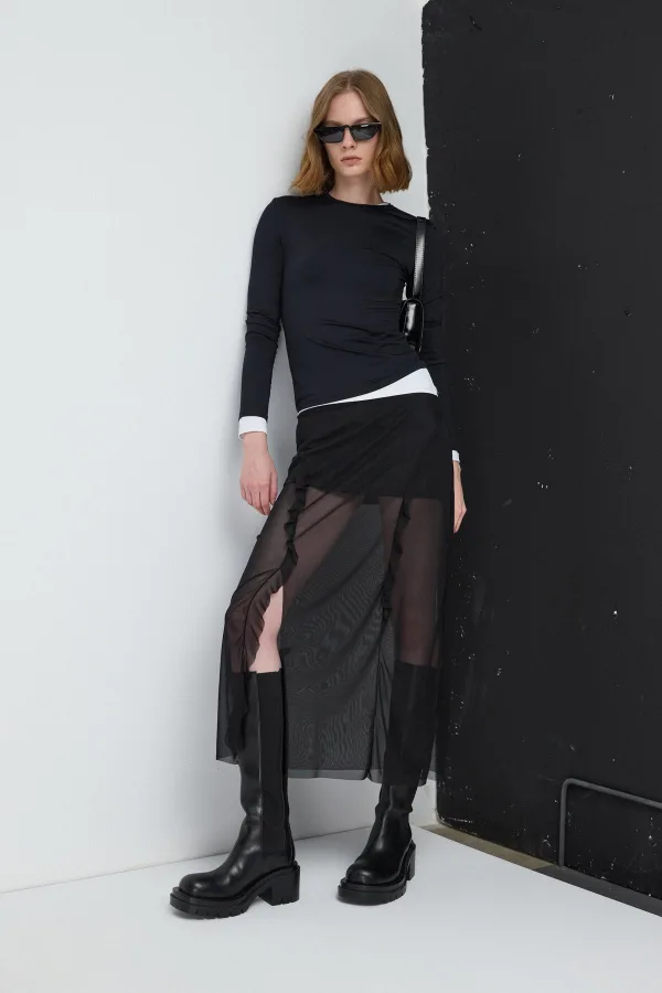 Design: Elastische taille/zoom, Gelaagde look; Motief: Effen; Details: Volant; Extra's: Licht transparant; Lengte: 3/4 lengte; Pasvorm: Normale pasvorm