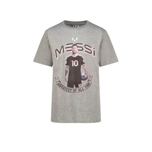 Dit T-shirt van Messi is voor jongens. Het heeft een grijs melange kleur en is voorzien van korte mouwen. Gemaakt van katoen en polyester biedt het een ronde hals voor een comfortabele pasvorm.
