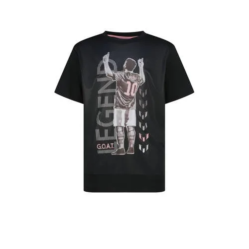 Dit jongens T-shirt van Messi is gemaakt van 100% polyester. Het heeft een zwarte kleur en een ronde hals. De korte mouwen zorgen voor een comfortabele en sportieve look voor elke jonge fan.