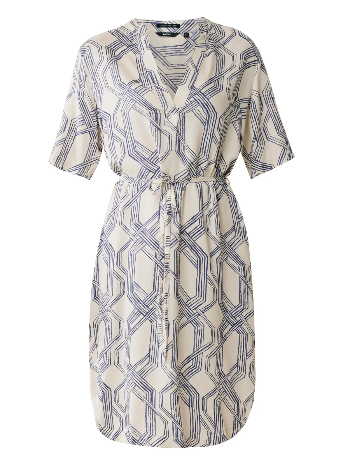 Design: Gevoerde zoom/rand, Taille met trekkoord, Ronde zoom; Materiaal: Viscose; Halstype: V-hals; Extra's: All-over patroon, Voelt zacht aan; Lengte: Knielengte; Pasvorm: Normale pasvorm; Armlengte: Kwartmouw