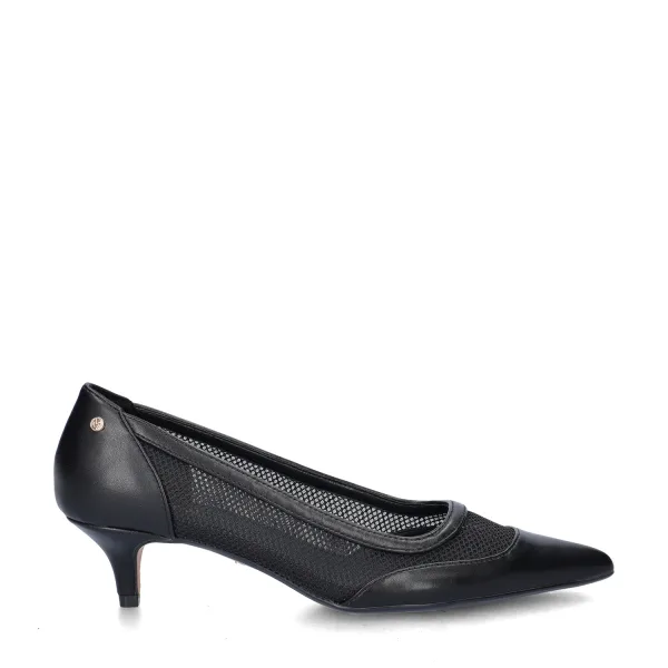 Mexx Ticha Suki dames pump Een klassieke pump met een twist die jouw feestoutfit een stijlvolle finish geeft. Uitgevoerd in imitatieleer en mesh-textiel. Voorzien van een imitatieleren voetbed met dempend kussen over de lengte van de voet. Afgewerkt met een gripvaste loopzool en elegant kittenheel.