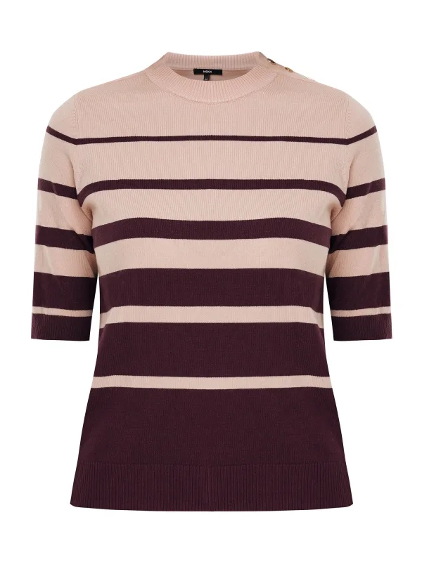 Design: Gevoerde zoom/rand; Materiaal: Knitwear; Halstype: Ronde hals; Motief: Gestreept; Extra's: Op staal naden; Pasvorm: Normale pasvorm; Armlengte: Halve mouw; Lengte: Normale lengte