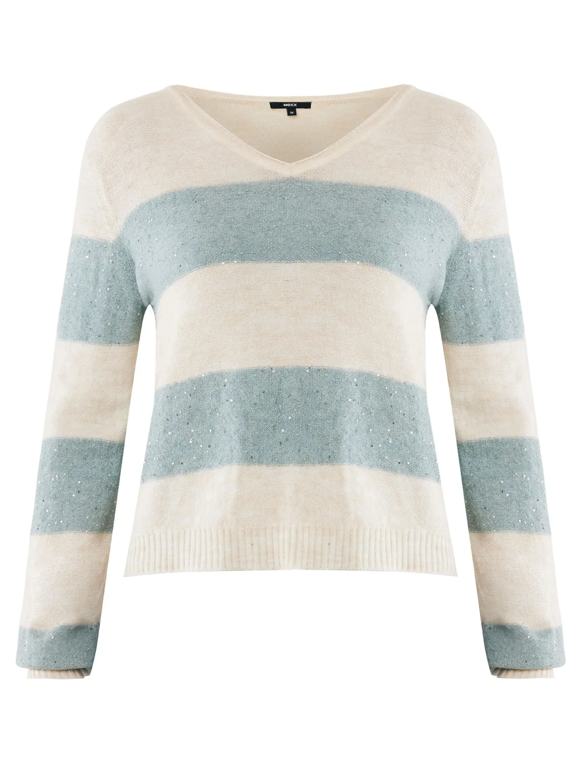 Design: Geribbelde kraag, Rechte zoom, Geribd ceintuurtje; Materiaal: Knitwear; Halstype: V-hals; Motief: Gestreept; Extra's: Label plaatje, Glitterend, All-over patroon, Met textuur; Pasvorm: Normale pasvorm; Armlengte: Lange mouw; Lengte: Normale lengte