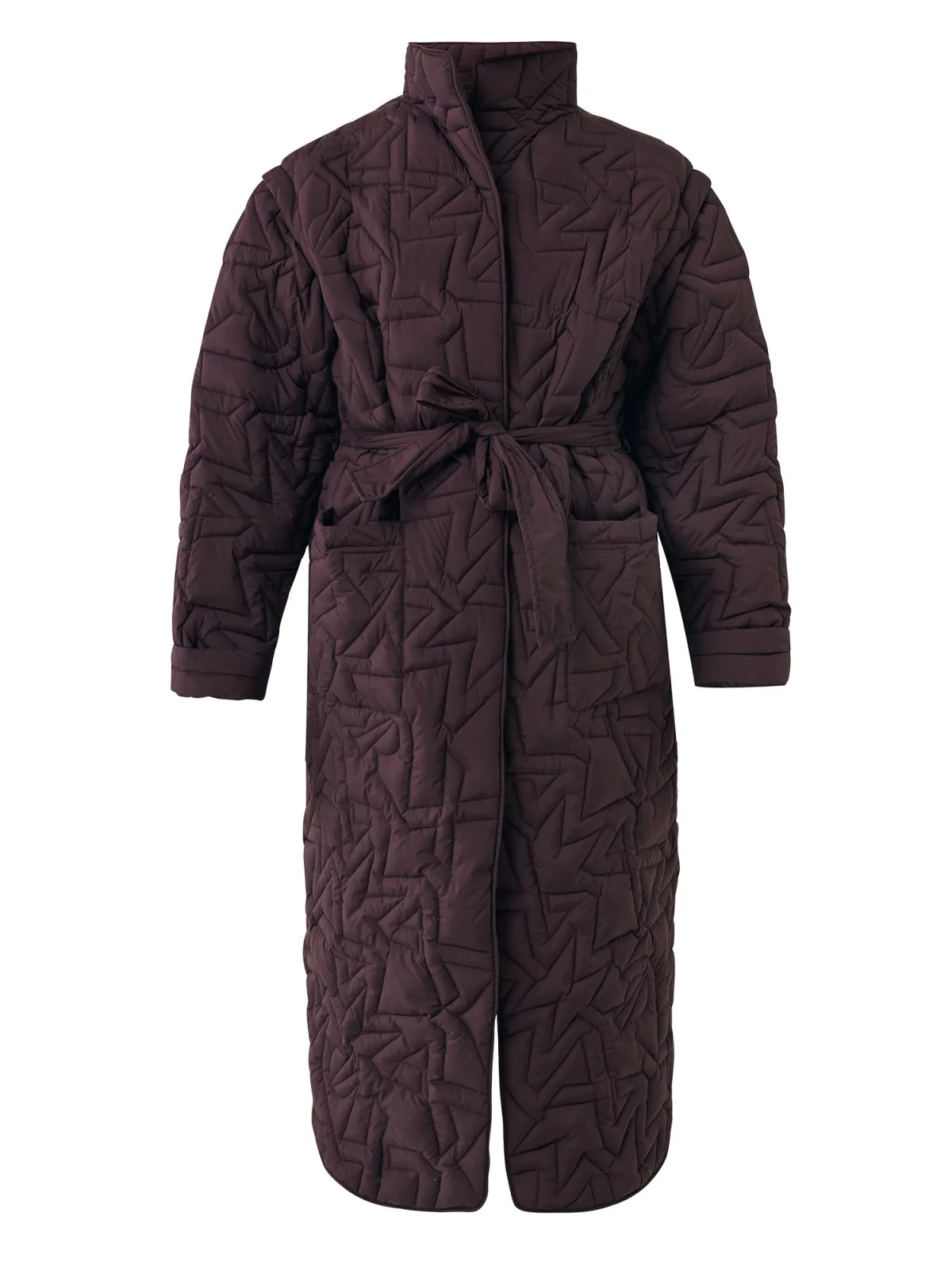 Type mantel: Gewatteerde jas; Design: Staande kraag, Om te knopen/binden, Opgezette zakken, Met riem; Type sluiting: Open; Voering: Licht gevoerd; Motief: Effen; Extra's: Stiksels, Op staal naden, Afneembare mouwen; Pasvorm: Losse pasvorm; Lengte: Lange pasvorm
