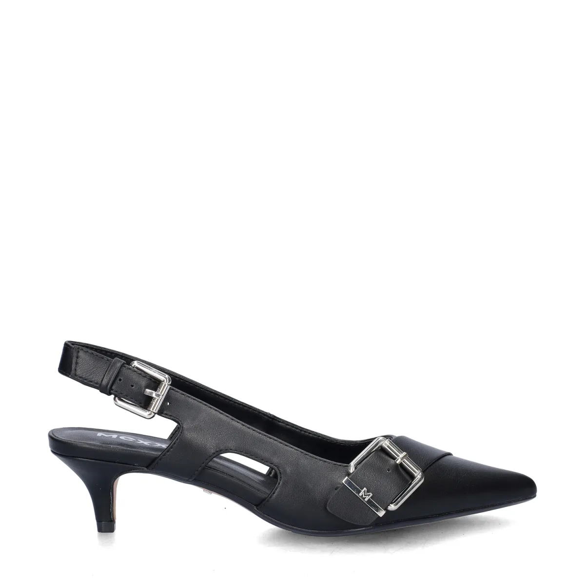 Mexx Tyra Suki dames pump Slingbacks zijn weer helemaal hot & happening. Voeg dit stoere model toe aan je schoenenverzameling en ga stijlvol de deur uit. Uitgevoerd in imitatieleer met stoere gespen voor een unieke look. Tevens gevoerd met imitatieleer en voorzien van een dempend kussen over de lengte van de voet. Afgewerkt met een gripvaste rubberen loopzool en lage kittenheel.