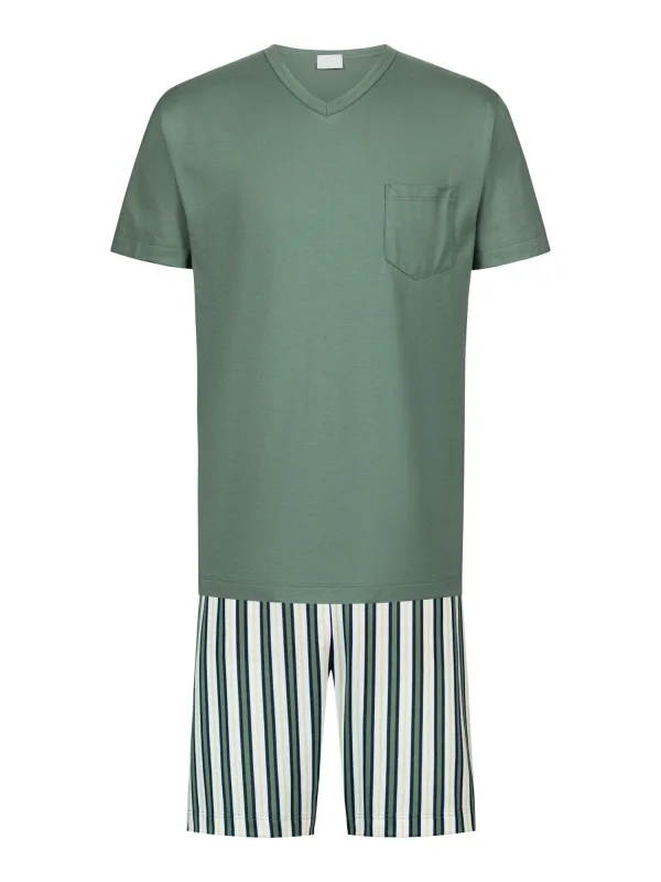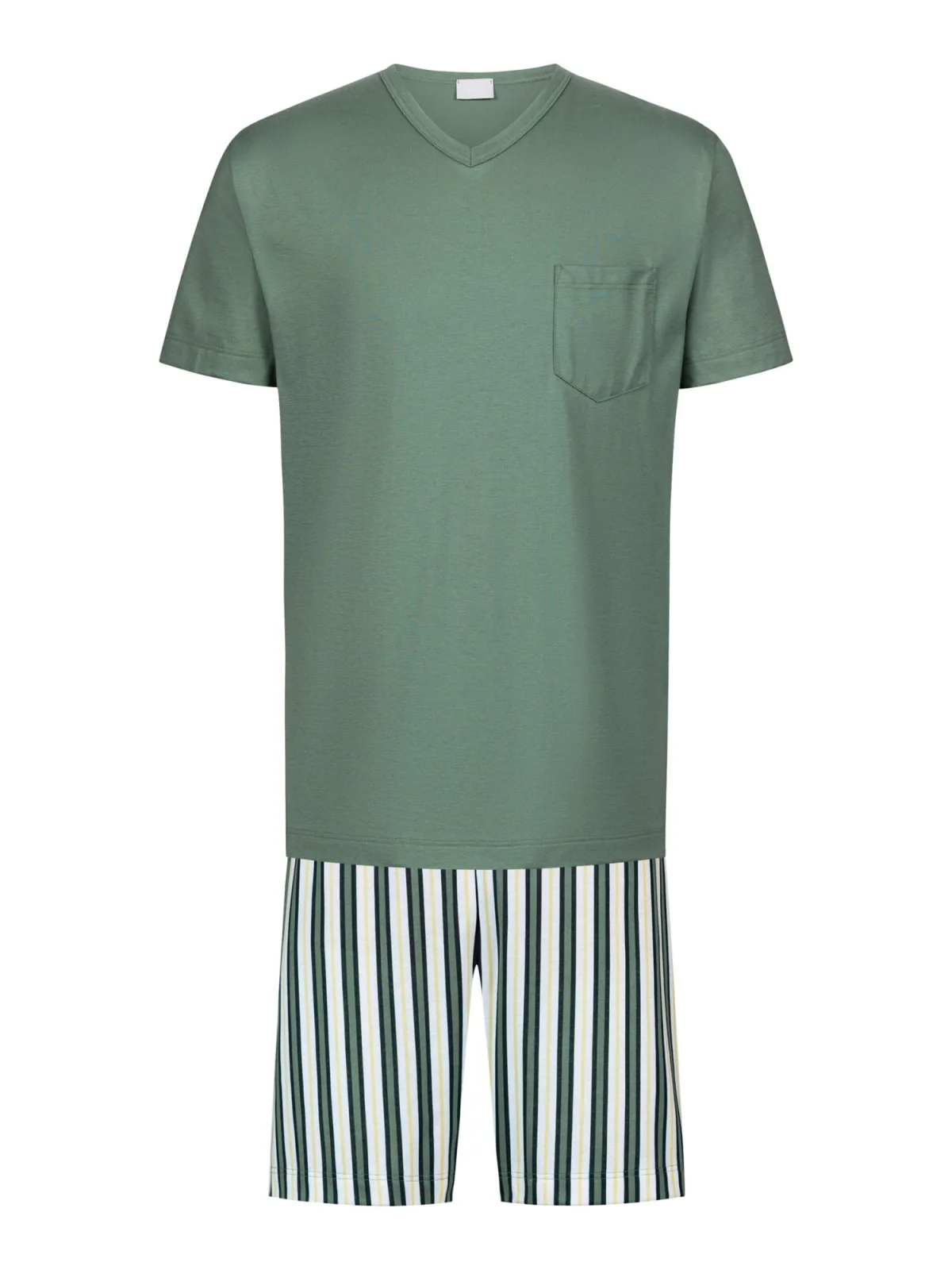 Mey Pyjama kort ‘Palm Stripes’ groen / wit