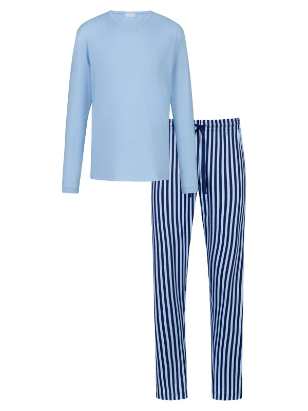 Mey Pyjama lang ‘Graphic Stripes’ lichtblauw
