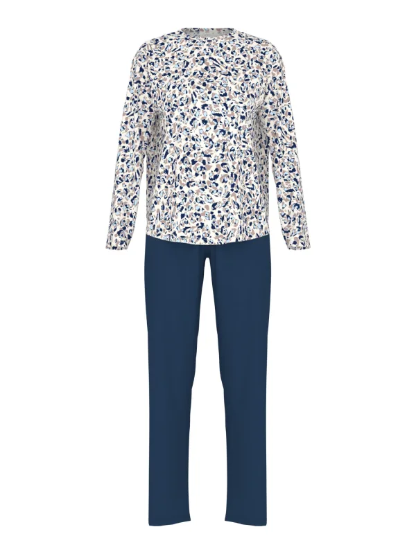Mey Pyjama ‘Soft Leo’ beige / neonblauw / donkerblauw / natuurwit