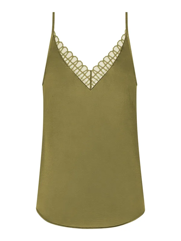 Design: Gevoerde zoom/rand; Materiaal: Viscose; Halstype: V-hals; Motief: Effen; Soort bandjes: Spaghettibandjes; Details: Kant; Extra's: Op staal naden; Pasvorm: Losse pasvorm; Armlengte: Mouwloos; Lengte: Normale lengte