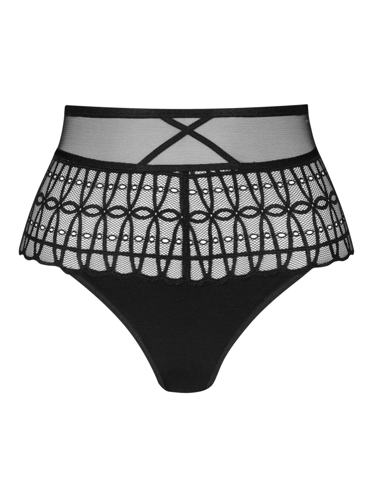 Motief: Effen; Details: Cut-outs, Kant; Extra's: Licht transparant; Taillehoogte: High waist