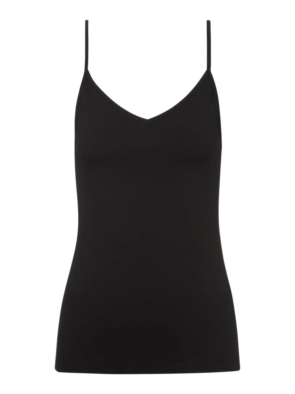Materiaal: Katoen; Halstype: V-hals; Motief: Effen; Soort bandjes: Spaghettibandjes; Pasvorm: Slanke pasvorm; Armlengte: Mouwloos; Lengte: Normale lengte