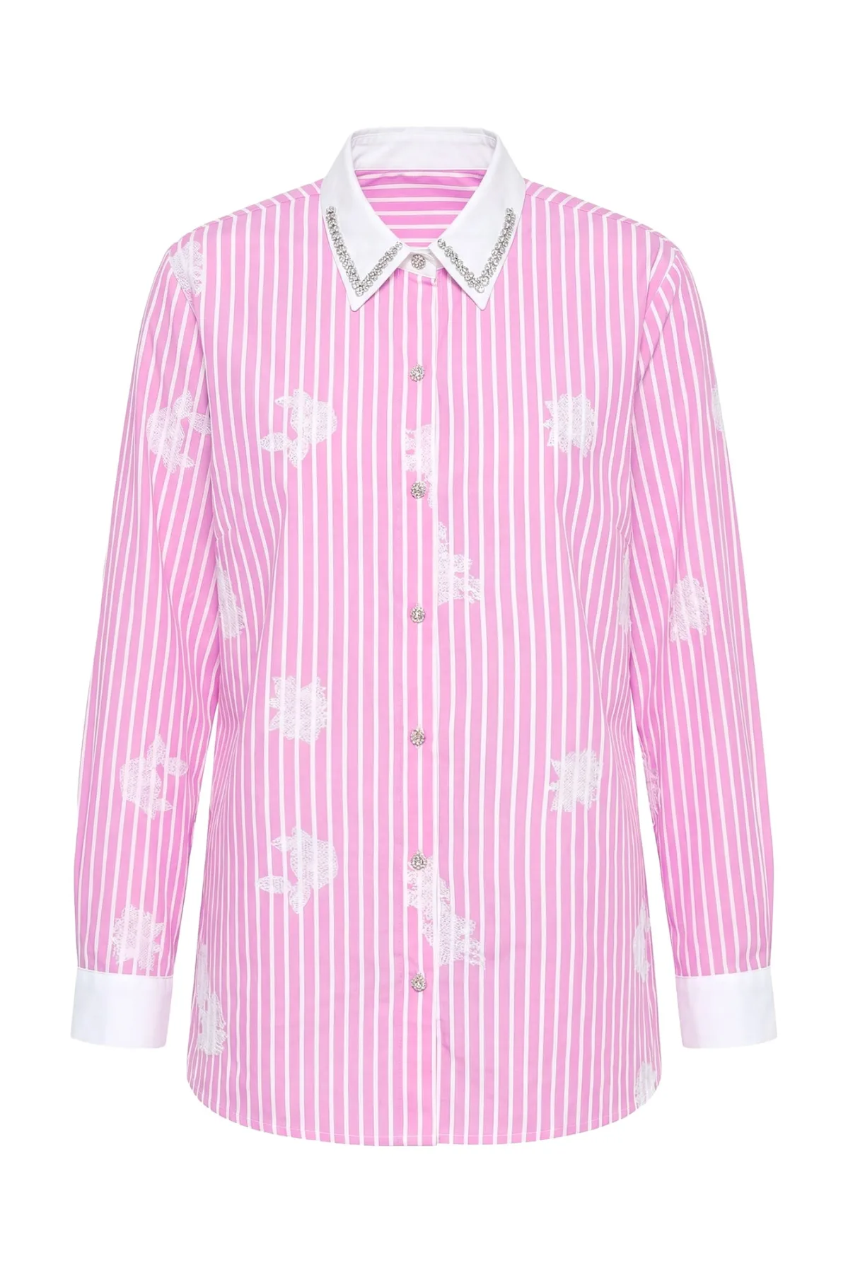 Blouse type: Klassieke blouse; Design: Gevoerde zoom/rand, Ronde zoom; Type sluiting: Knoopsluiting; Materiaal: Katoen; Motief: Gestreept; Kraag: Kentkraag; Details: Pailletten, Borduursels; Extra's: All-over patroon; Pasvorm: Normale pasvorm; Armlengte: Lange mouw; Lengte: Normale lengte