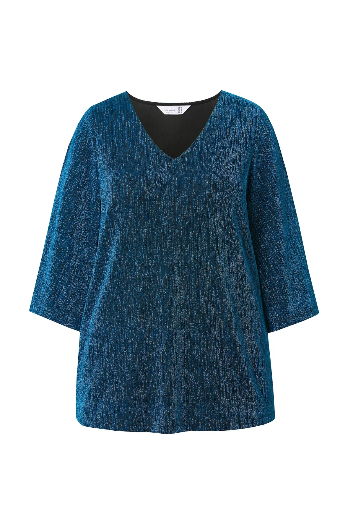 Blouse type: Blouseshirt; Design: A-lijn; Halstype: V-hals; Motief: Effen; Kraag: Zonder kraag; Extra's: Glitterend; Pasvorm: Losse pasvorm; Armlengte: Driekwart mouw; Lengte: Normale lengte