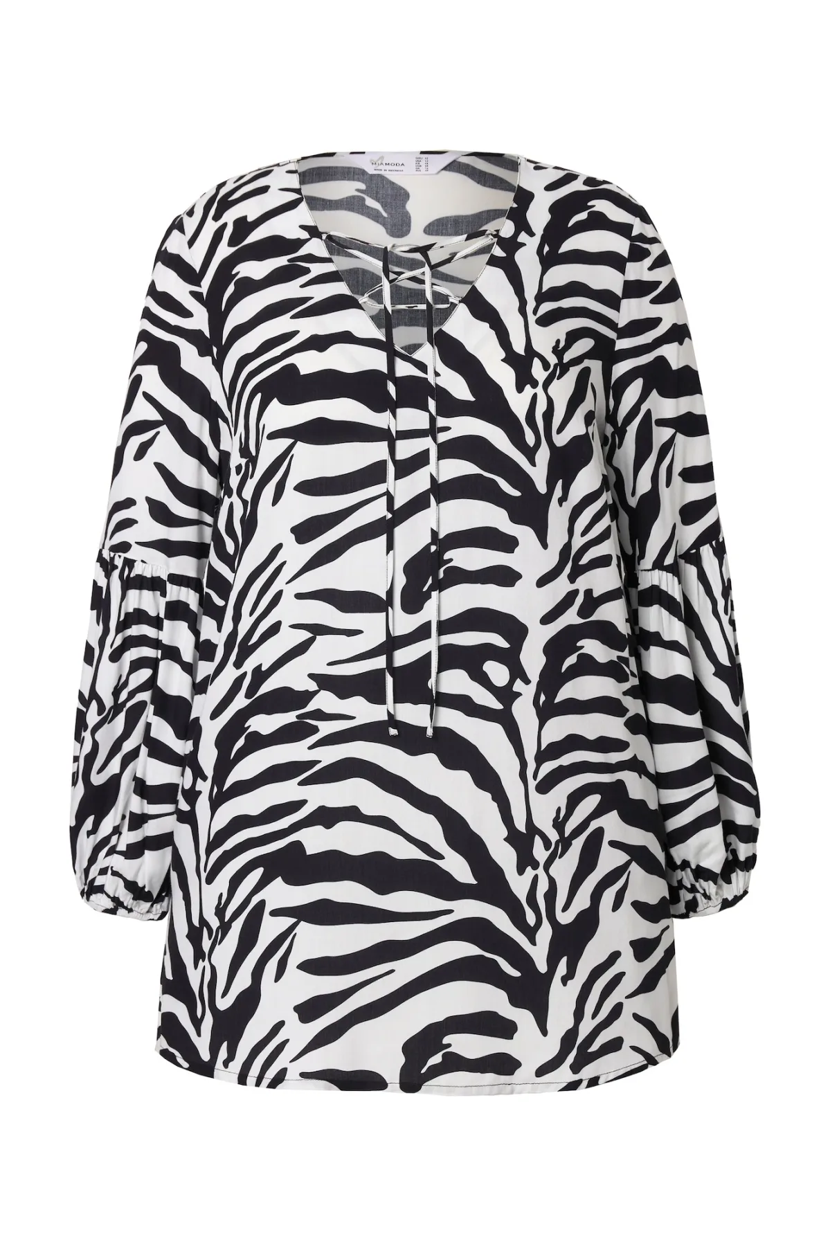 Blouse type: Blouseshirt; Design: Gevoerde zoom/rand, A-lijn, Elastische taille/zoom, Pofmouwen, Vetering; Type sluiting: Snoersluiting; Materiaal: Viscose; Motief: Dierenprint; Kraag: Tuniek kraag; Details: Gedrapeerd; Extra's: All-over patroon, Label patch/label flag, Gladde stof, Voelt zacht aan; Pasvorm: Losse pasvorm; Armlengte: Lange mouw; Lengte: Normale lengte