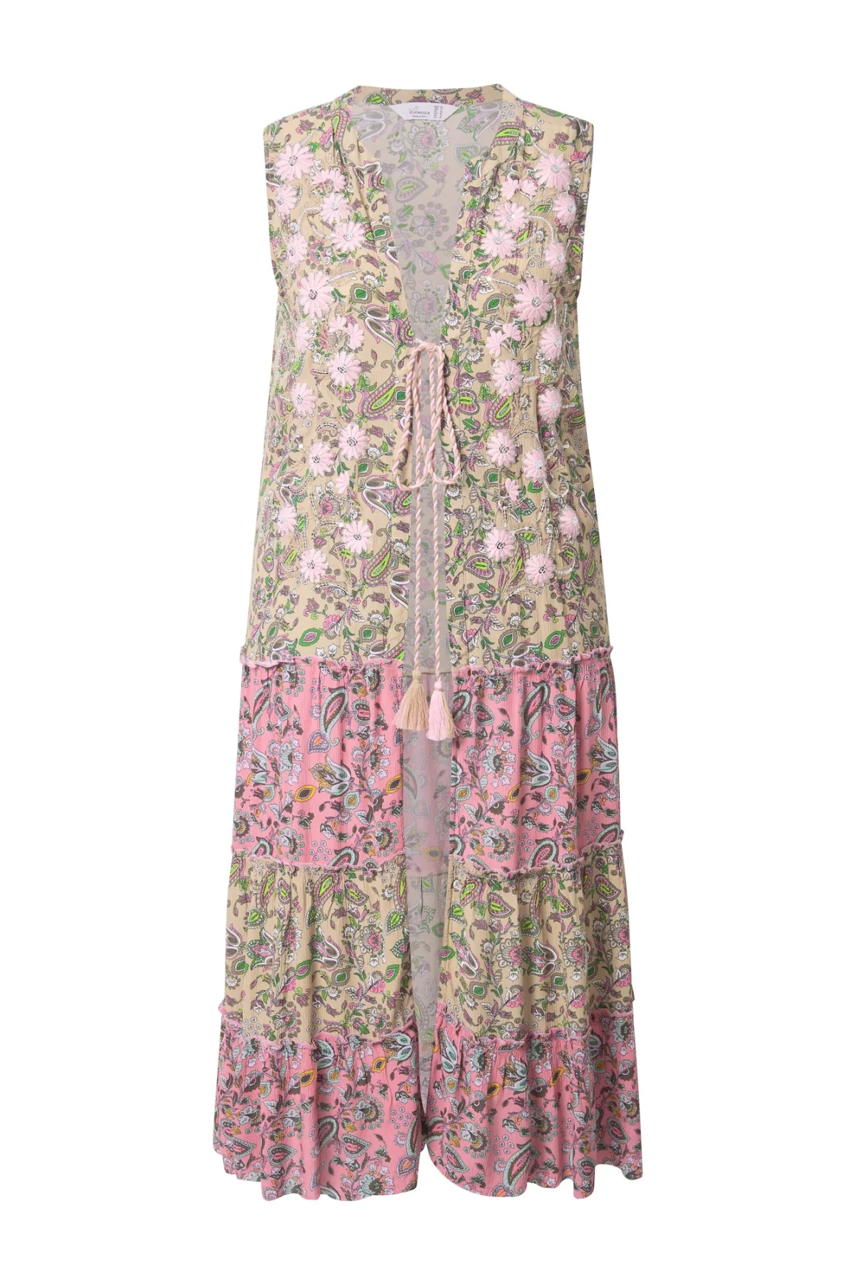 Design: A-lijn, Met band/snoer; Materiaal: Viscose; Motief: Bloemenprint; Details: Borduursels, Gedrapeerd; Extra's: All-over patroon; Pasvorm: Normale pasvorm; Armlengte: Mouwloos; Lengte: Lange pasvorm