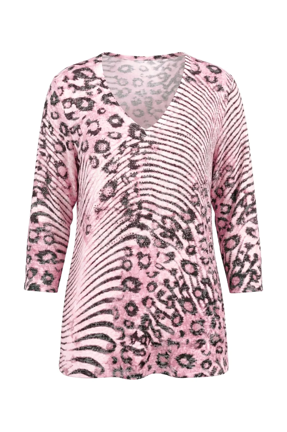 Design: Gevoerde zoom/rand; Materiaal: Jersey; Halstype: V-hals; Motief: Dierenprint; Extra's: All-over patroon; Pasvorm: Normale pasvorm; Armlengte: Driekwart mouw; Lengte: Normale lengte