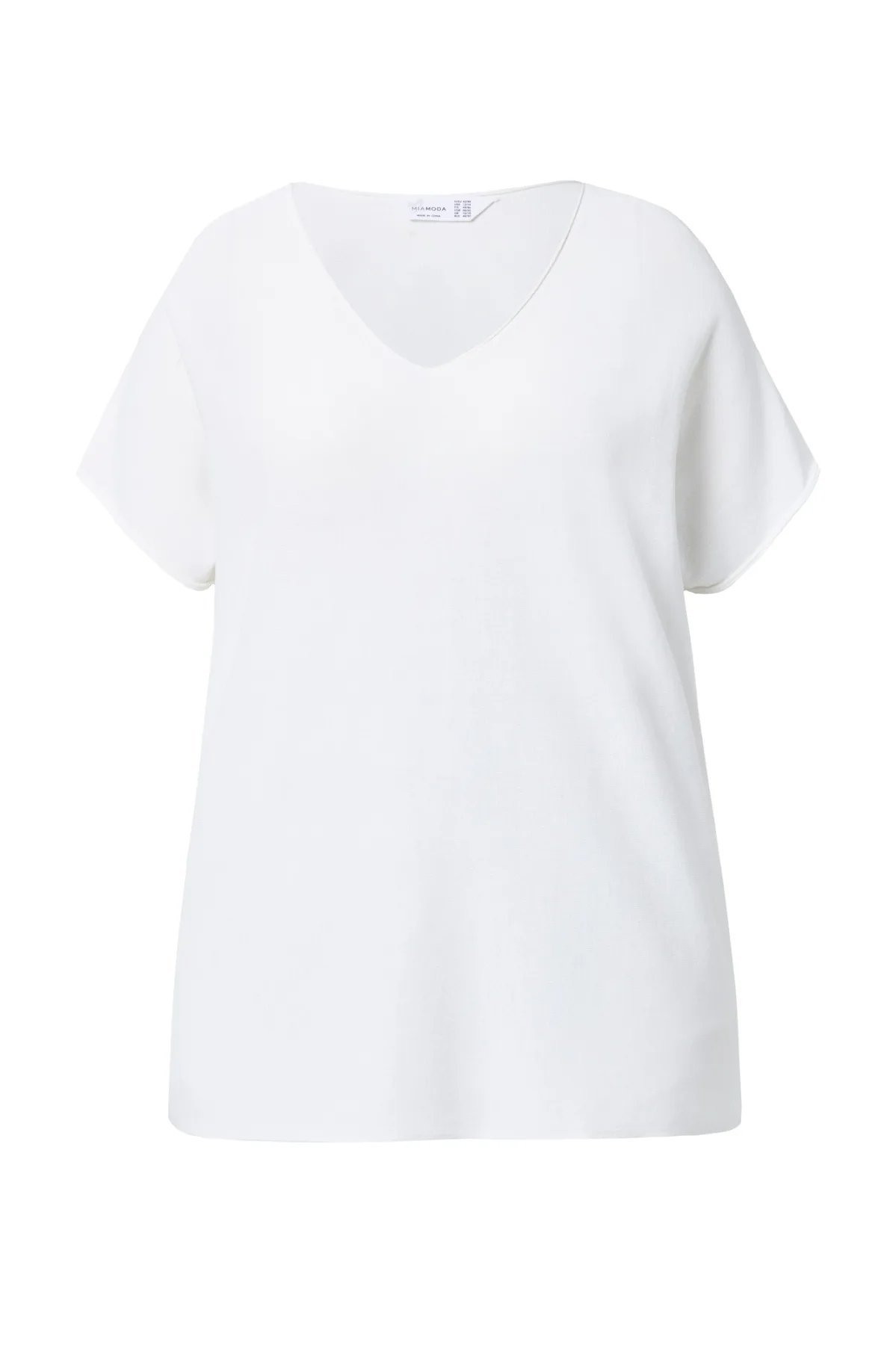 Design: Oversized; Materiaal: Jersey; Halstype: V-hals; Motief: Effen; Extra's: Op staal naden; Pasvorm: Normale pasvorm; Armlengte: Kwartmouw; Lengte: Normale lengte