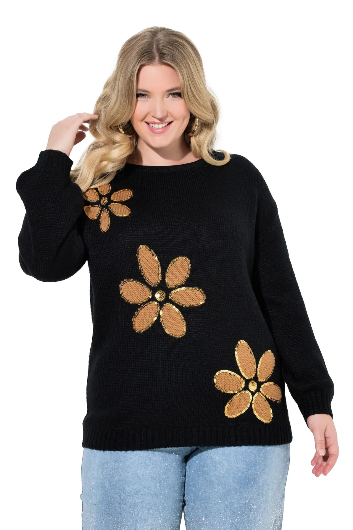 Design: Geribbelde kraag; Halstype: Ronde hals; Motief: Bloemenprint; Details: Pailletten; Pasvorm: Normale pasvorm; Armlengte: Lange mouw; Lengte: Normale lengte
