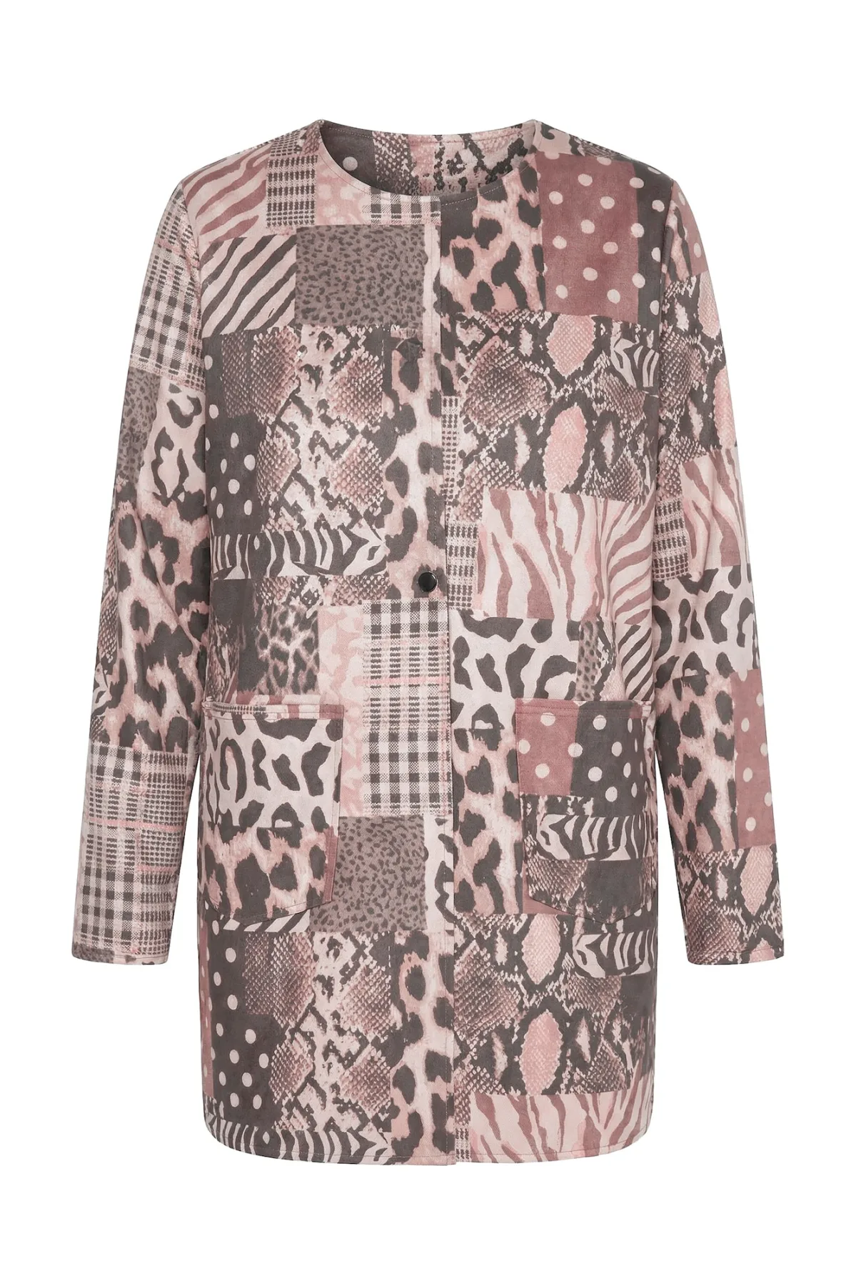 Design: Rechte zoom, Zakken aan de zijkant, Knop sluiting; Voering: Niet gevoerd; Extra's: All-over patroon; Pasvorm: Normale pasvorm