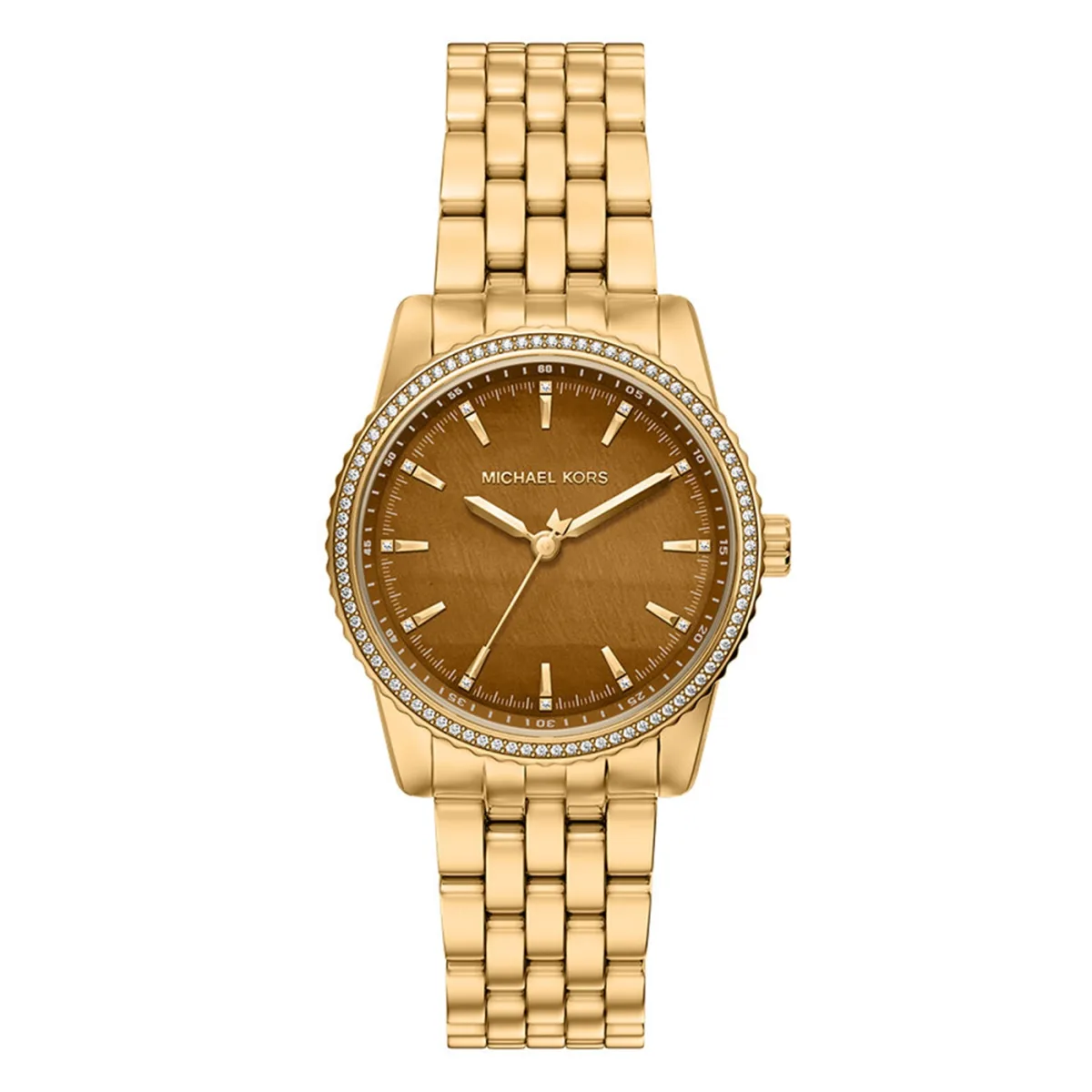 Onze bestverkochte Bryant met schakelband is terug met een wijzerplaat van echt tijgeroog, persoonlijk aangevraagd door Michael zelf. Het klassieke goudkleurige roestvrijstalen silhouet combineert luxe stijl met moeiteloos dagelijks gebruik.