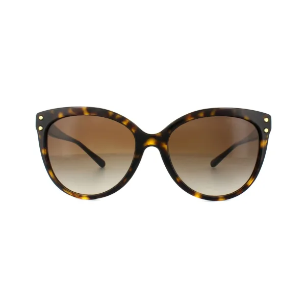 Michael Kors zonnebril jan 2045 3006/13 Dark Havana Brown Gradient zijn een klassieke kattenoogvorm met 2 prominente klinknageldetails op de voor tempels en een typisch MK -logo op de armen voor een authentieke chique en wenselijk uiterlijk