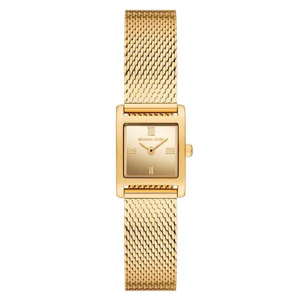 Dit horloge van Michael Kors is gemaakt van rvs en heeft een veiligheidssluiting. Met een goudkleurige look, waterbestendig tot vijf atm, draag je dit horloge elke dag met gemak.