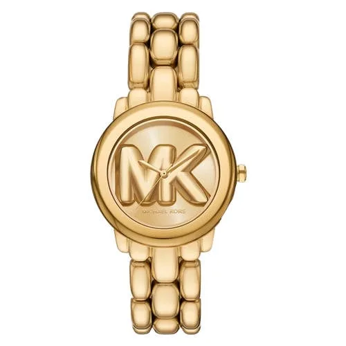 Dit horloge van Michael Kors heeft een kliksluiting en is gemaakt van RVS. De goudkleurige kast, wijzerplaat en band zorgen voor een stijlvolle uitstraling, het horloge is tot vijf atm waterbestendig.