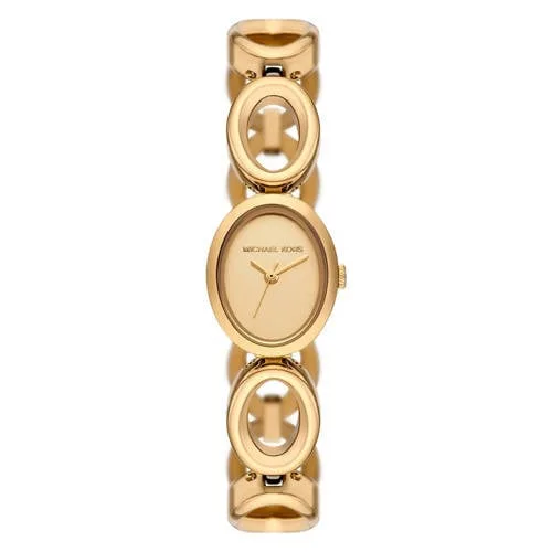 Dit horloge van Michael Kors is goudkleurig en gemaakt van rvs. De waterbestendigheid is tot drie atm, de sluiting is een Adjust-O-Matic. Met deze combinatie draag je altijd een tijdloos sieraad.