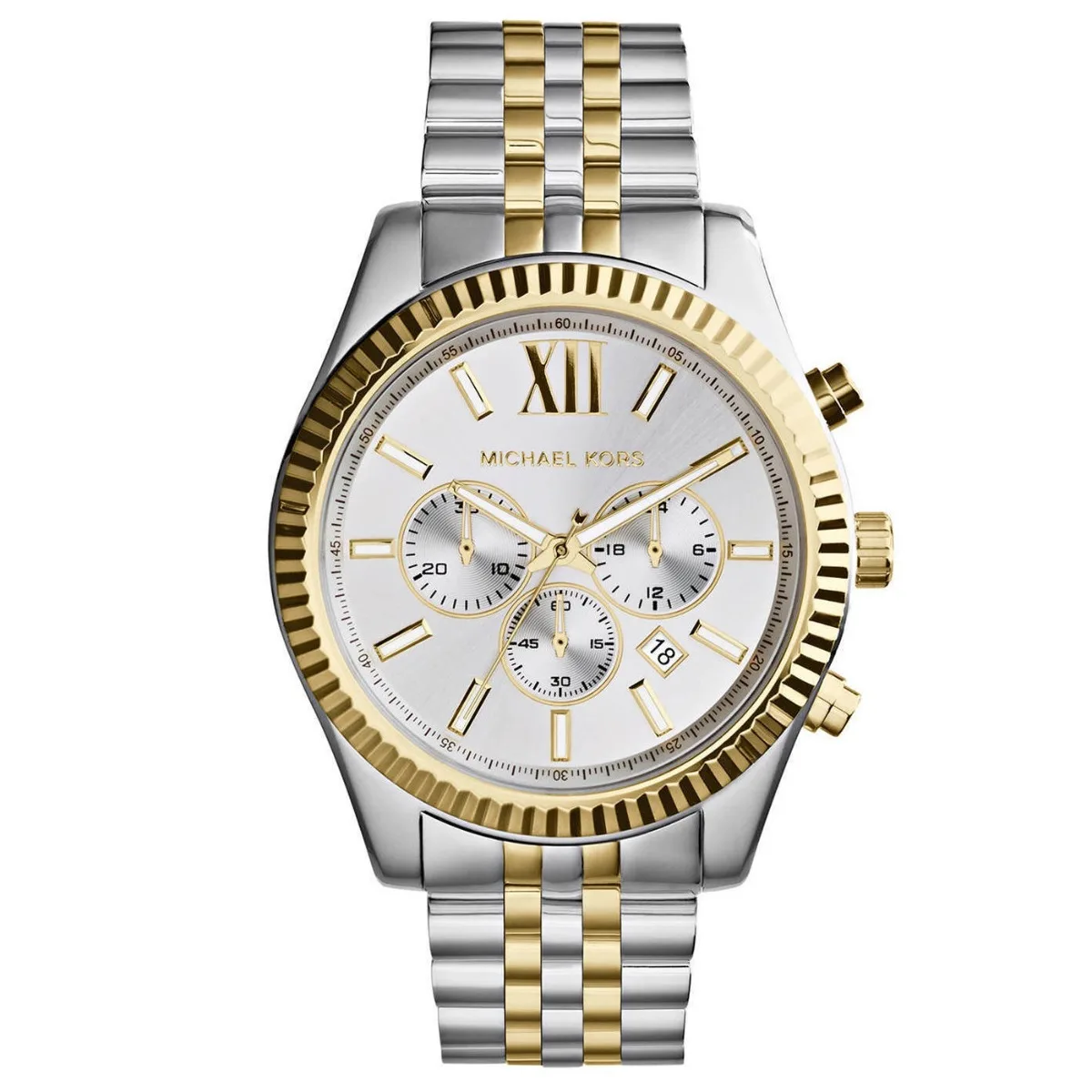 Heren horloge van het merk Michael Kors in de kleur goud. De kast heeft een diameter van 45 mm. Merk: Michael KorsModelnaam: MK8344 (45mm)Categorie: heren polshorlogeMaterialen: edelstaalKleur: goud, zilverUurwerk: Quartz