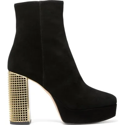 Michael Kors Maxine Platform Boot In Black With Gold Heel