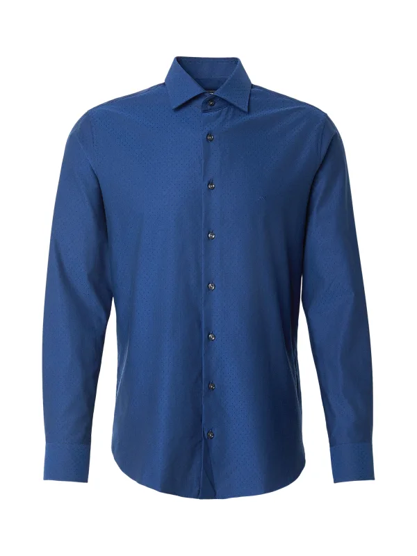 Design: 1-knoops manchetten, Schuine manchetten, Ronde zoom; Type sluiting: Knoopsluiting; Materiaal: Katoen; Motief: Gestippeld; Kraag: Kentkraag; Extra's: All-over patroon, Label borduurwerk; Pasvorm: Slim fit; Armlengte: Lange mouw