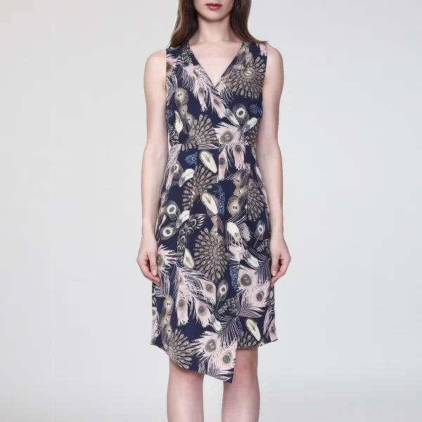 Mid-length kruis-hartjurk met veren afdrukken Prijzen