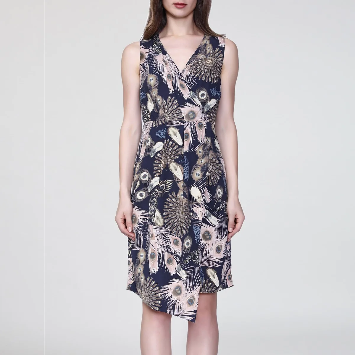 Specificaties: Mid-length kruis-hartjurk met veren afdrukken
