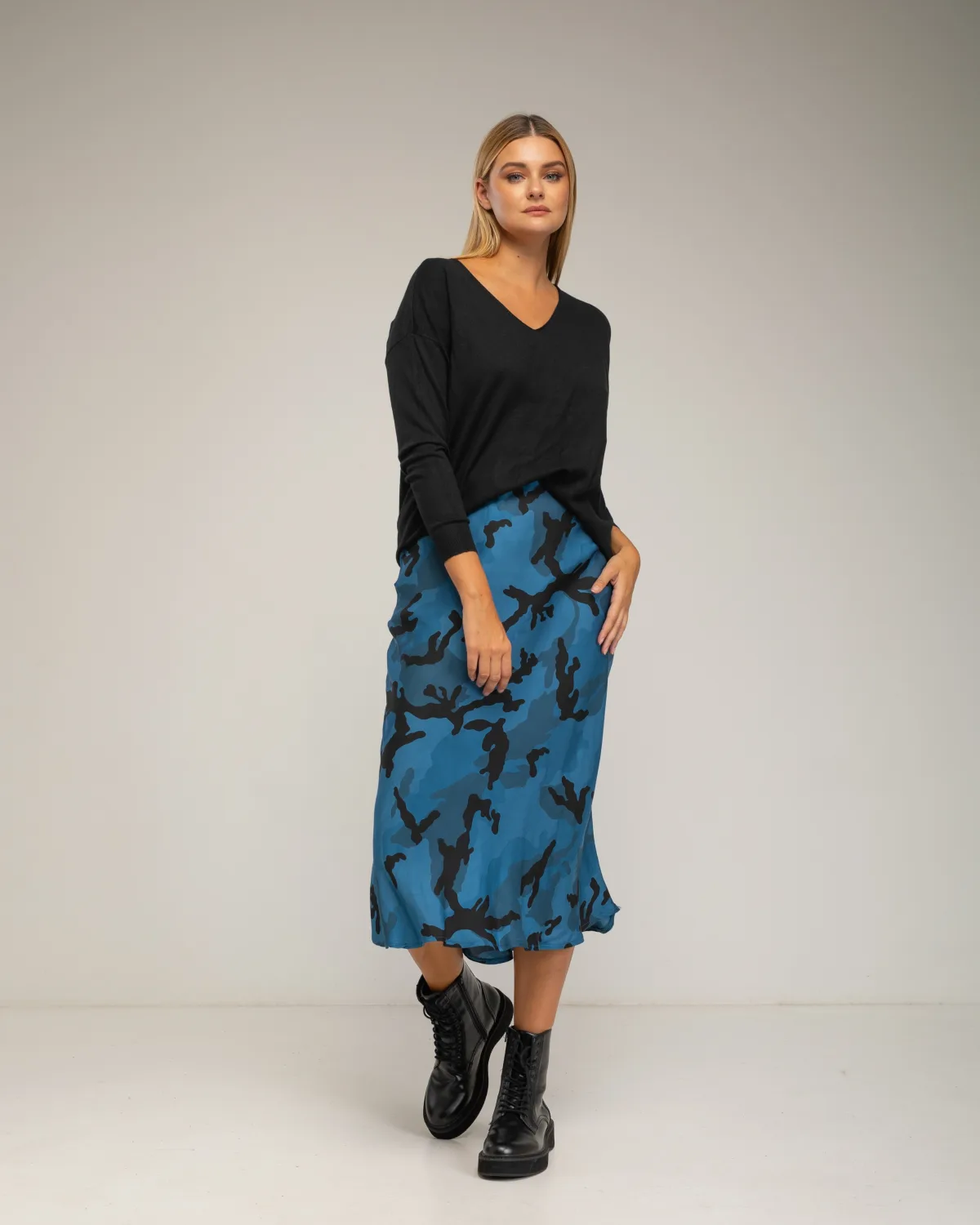 Midi geprinte rok met zijde