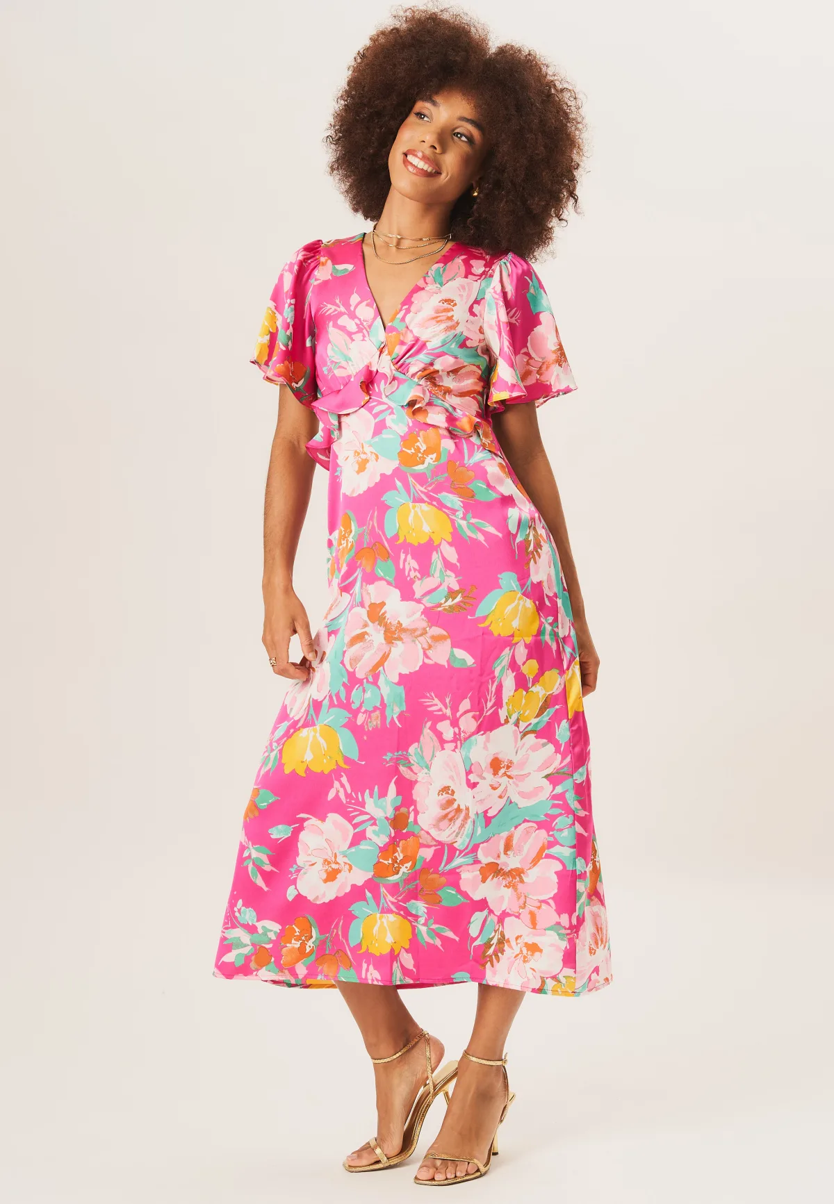 Midi-jurk met bloemenprint en engelmouwen Prijzen