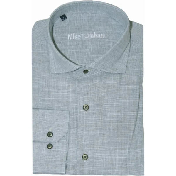 Katoenen heren overhemd met een linnen look van Mike Turnham. Slim fit 100% Katoen