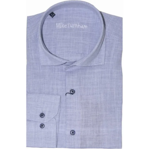 Katoenen heren overhemd met een linnen look van Mike Turnham. Slim fit 100% Katoen