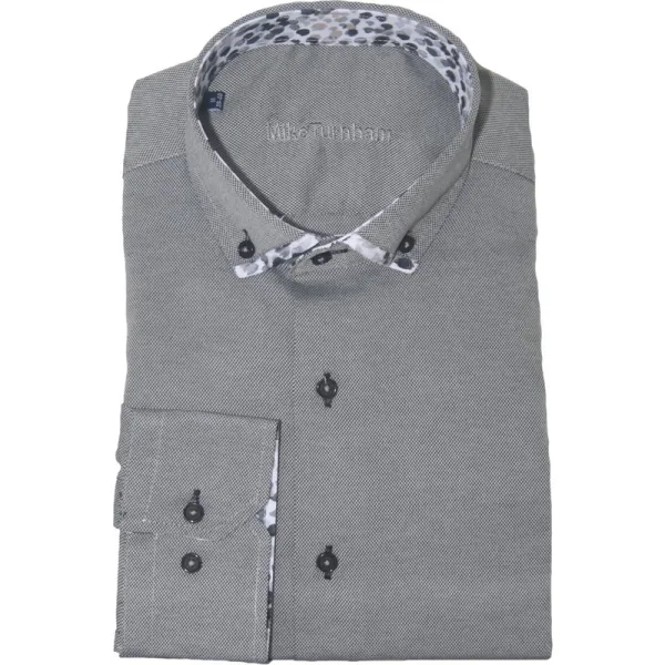 Casual heren overhemd van Mike Tunrham. Dit casual overhemd heeft een mooie smalle pasvorm, lange mouwen en een button-down kraag. Slim fit 100% Katoen