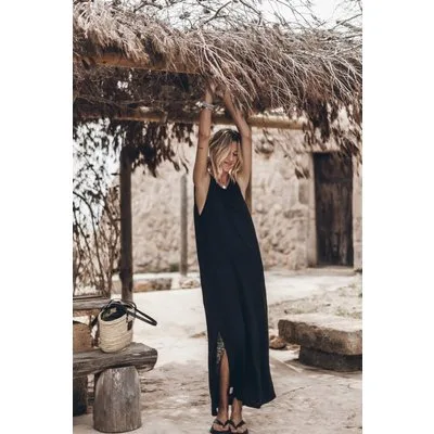 Mikuta The Black Low Back Linen Tank Dress Black