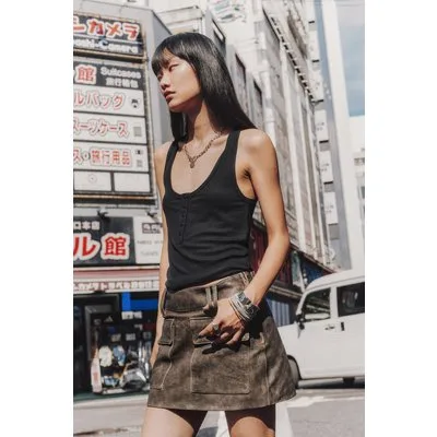 Mikuta The Brown Leather Mini Skirt