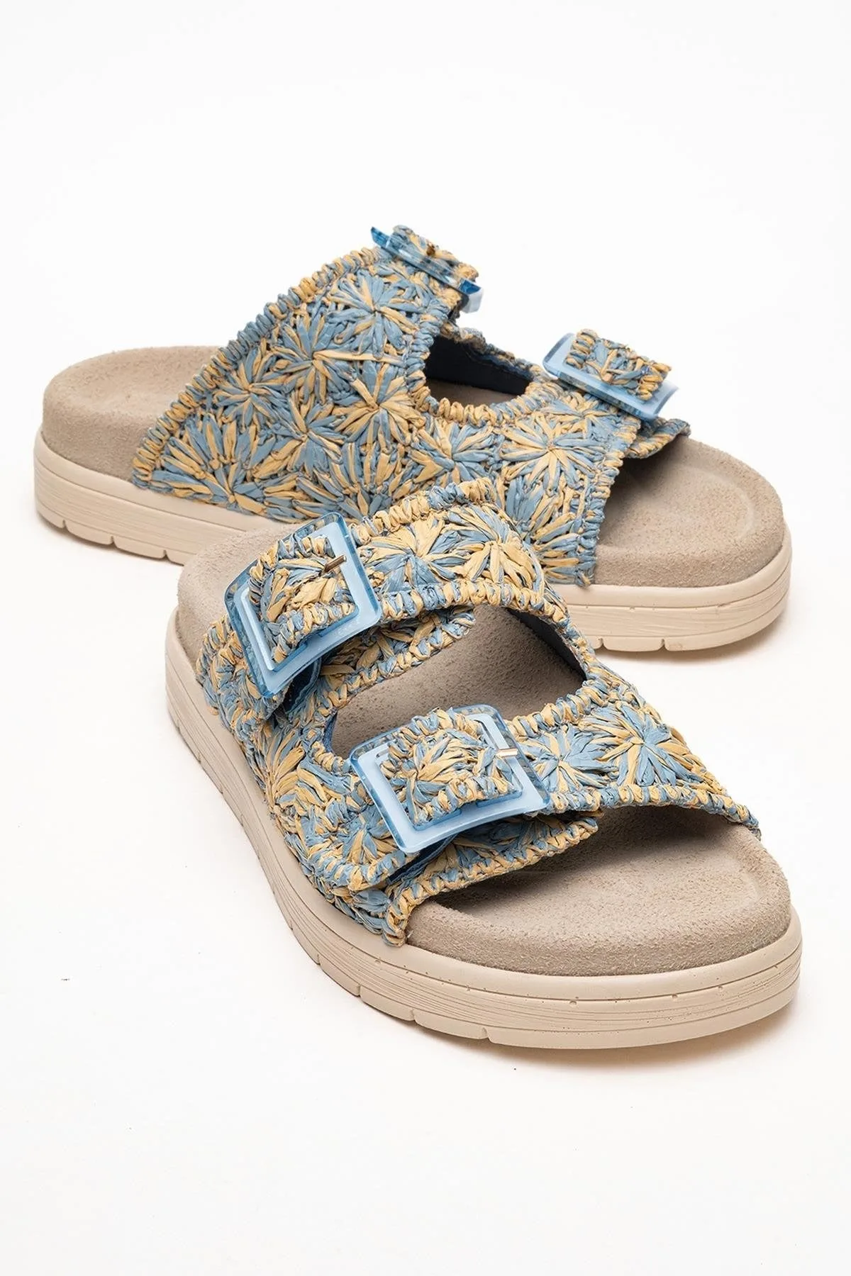 Platte slide-sandaal van echt Italiaans nappaleder. Dubbele gespsluiting voor perfecte pasvorm. 2,5 cm hak biedt subtiele verhoging met optimaal draagcomfort. Handgemaakt in Turkije.