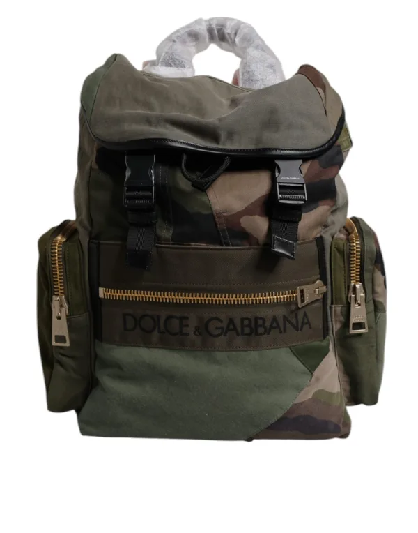 DOLCE & GABBANA Prachtige gloednieuwe, 100% authentieke Dolce & Gabbana rugzak met een grote, effen weving, merklogo, camouflage, trekkoordsluiting, volledig gevoerd, interne zakken met trekkoord. Model: Rugzak Kleur: Militaire Groen Materiaal: 80% Katoen 10% Kalfsleer 10% Nylon Stof binnenvoering Trekkoordsluiting Logo-details, logo gegraveerd op metalen hardware Gemaakt in Italië Zeer exclusief en van zeer hoge ambachtelijkheid Afmetingen: 38cm x 40cm x 13cm Band: 90cm x 6cm