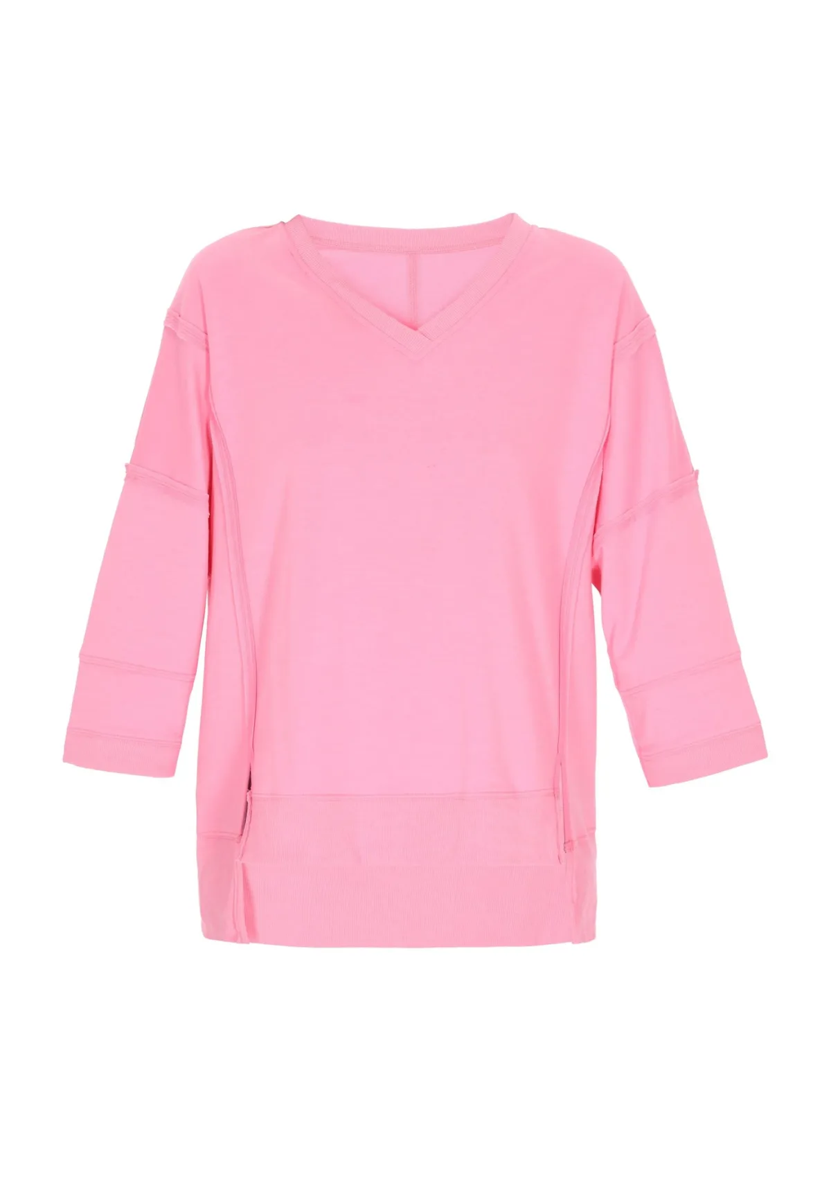 Design: Geribd ceintuurtje; Materiaal: Sweatstof; Halstype: V-hals; Motief: Effen; Extra's: Op staal naden; Pasvorm: Losse pasvorm; Armlengte: Driekwart mouw; Lengte: Normale lengte