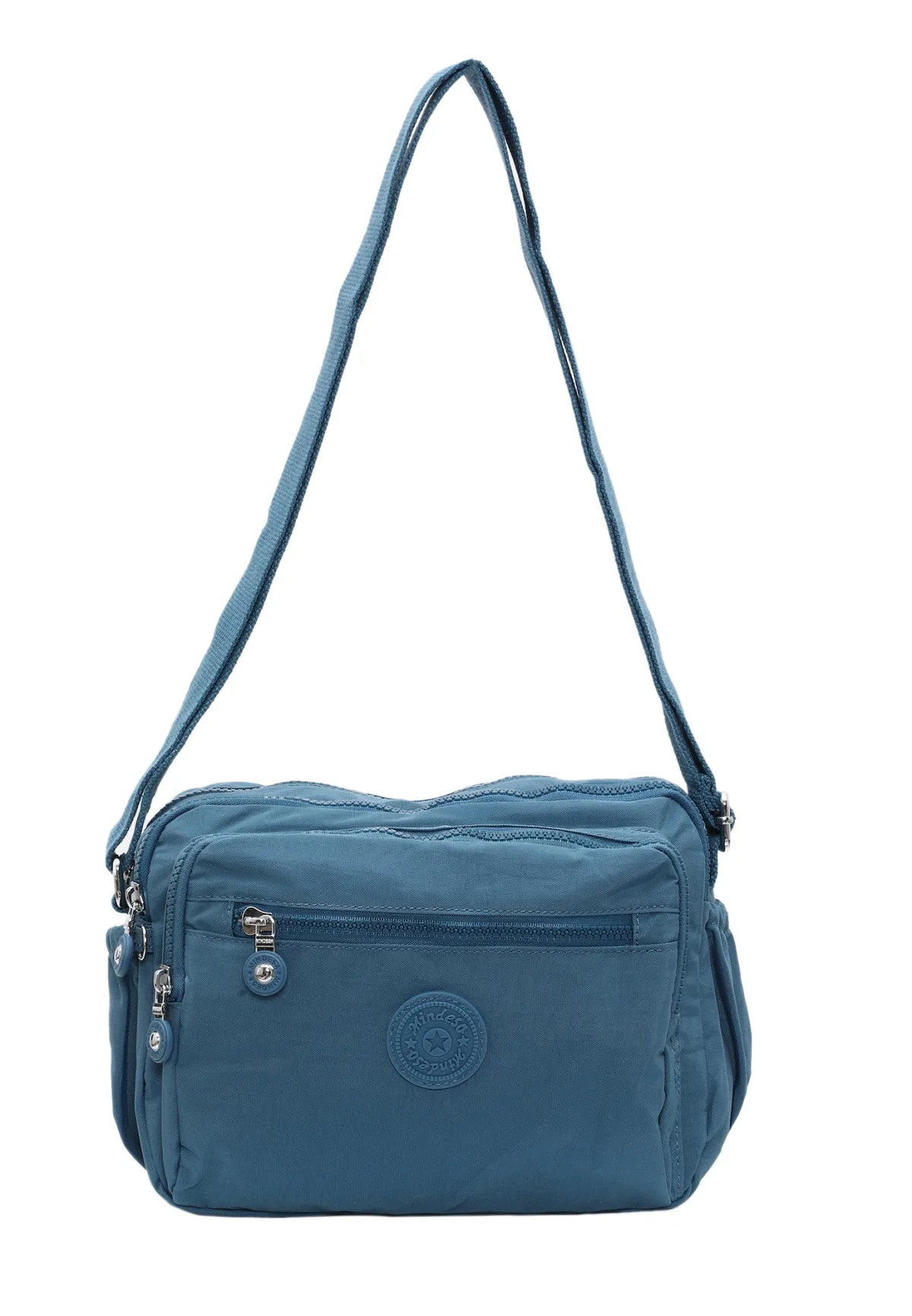 - De laagste prijs van Mindesa Schoudertas blauw denim werd gevonden op 26 april 2026 01:46.