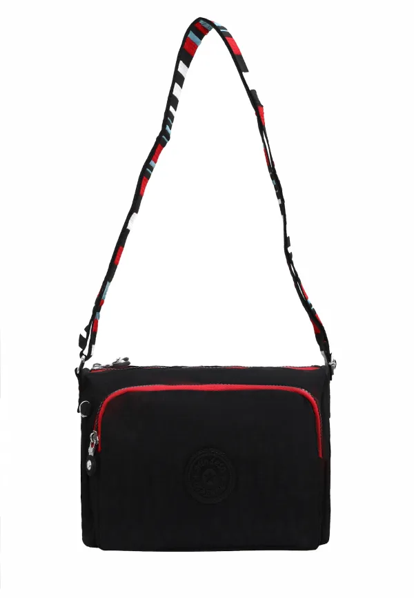 Specificaties: Mindesa Schoudertas lichtblauw / rood / zwart / wit