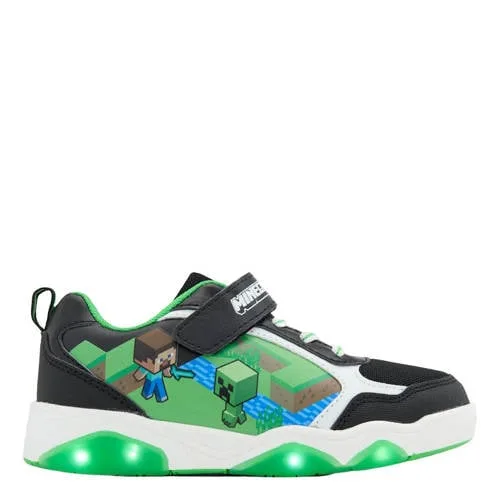 Voor kleine fans van de pixelwereld zijn deze Minecraft sneakers voor jongens een fijne keuze voor elke dag. De groen/zwarte schoen met herkenbare game-look valt direct op en past goed bij een stoere outfit voor school of buitenspelen. Het lage model met platte zool geeft veel bewegingsvrijheid zodat rennen, springen en klimmen moeiteloos gaat.Praktische details voor actief speelplezier Laag model met platte zool voor soepel bewegen en veel speelcomfort Klittenbandsluiting met elastische veters, snel aan en uit te trekken Normale leest, sluit mooi aan om de voet Bovenkant van imitatieleer, eenvoudig schoon te maken met een vochtige doek Voering en binnenzool van zachte textielstof voor een prettig gevoel aan de voet Rubberen buitenzool voor goede grip op de stoep, het schoolplein en in de speeltuin Geschikt voor peuter- en kleutermatenSpeels design met lichtjesDe lichtjes in de schoen geven elke stap iets extra's. Tijdens het lopen lichten ze op, wat spelen nog leuker maakt. Handig voor drukke dagen naar school, naar de opvang of een middag buiten, want de combinatie van stevige zool en comfortabele voering ondersteunt kleine voeten goed.De wereld van Minecraft aan je voetenMinecraft is al jaren een favoriet bij kinderen die graag bouwen en hun eigen wereld ontdekken. Die herkenbare stijl zie je terug in deze sneakers, met kleuren en details die doen denken aan het spel. Zo nemen kinderen hun favoriete gamepersonage een beetje mee in het dagelijks leven.Ideaal voor wie op zoek is naar comfortabele kindersneakers met een speelse game-uitstraling.