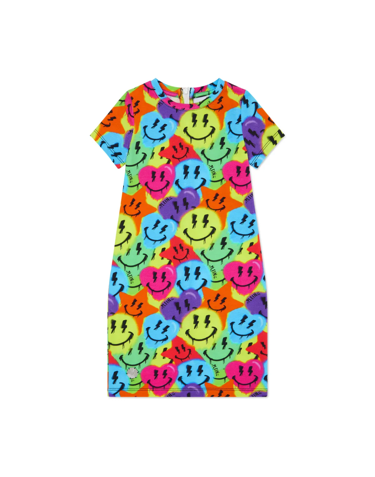This darling, little dress will brighten up your summer. Multicolor Smile print stretch jersey Short sleeves Zipper fastening at center back Two needle stitching